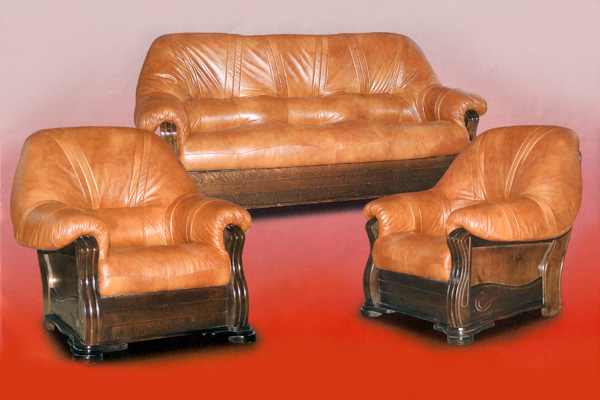 Kpl. wypoczynkowe skórzano-dębowe
