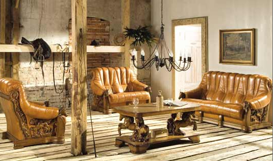 Kpl. wypoczynkowe skórzano-dębowe